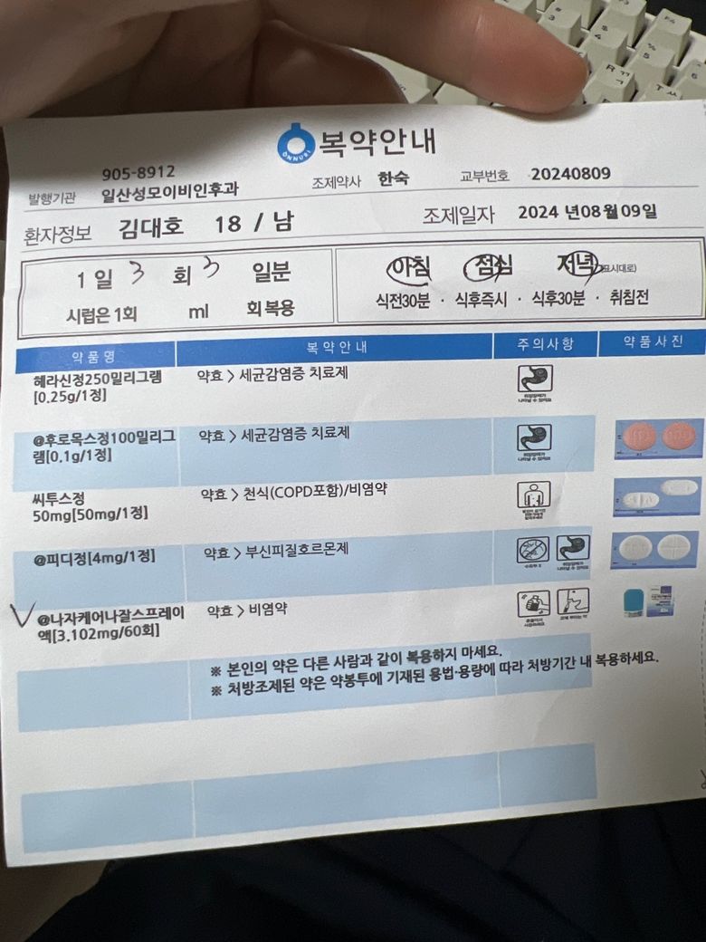 처방된 약에는 항생제와 스테로이드제가 포함되어 있습니다.