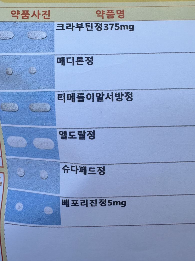 약에 관한 질문을 주셨습니다. 두종류가 있습니다. 슈다페드정은 콧물, 코막힘이 있을때 복용하는 약입니다. 베포리진정은 흐르는콧물, 재채기가 있을때 복용하는 약입니다.