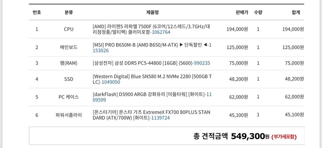 CPU는 7500f로 고정할 거 같습니다 견적 호환성 체크 부탁드립니다!