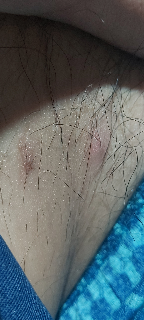 단순 염증이나 모낭염 혹은 물린 상처일 가능성이 있어 보입니다. 우선 경과관찰 을하시고 악화양상을 모인다면 피부과 진료를 보시기 바랍니다.