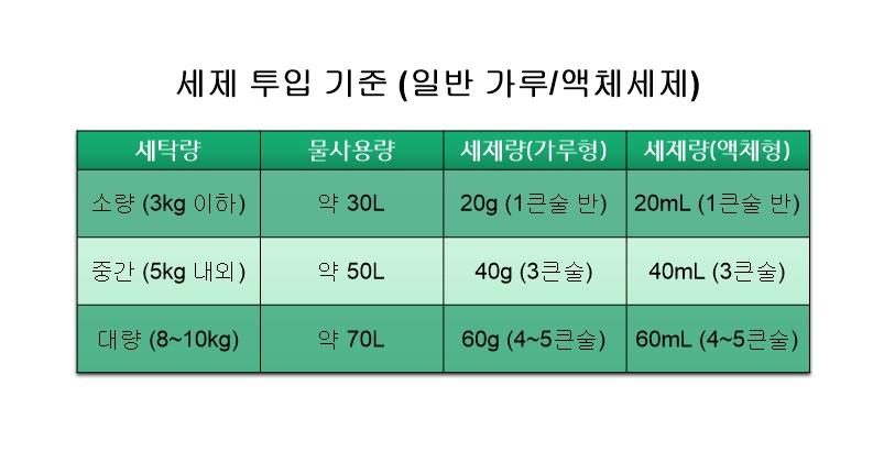 세제 투입기준을 제가 한번 적어봤습니다. 미력이나마 도움이 되셨으면 좋겠습니다.