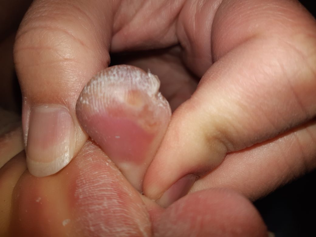 이번에 걷다가 아파서 새끼발까락을 보니 염증이 생겼는데 처음에는 염증난 곧과 발까락 전체가 아팠는데 지금은 통증이 덜하고 발톱을 누를때만 통증이 생김니다.