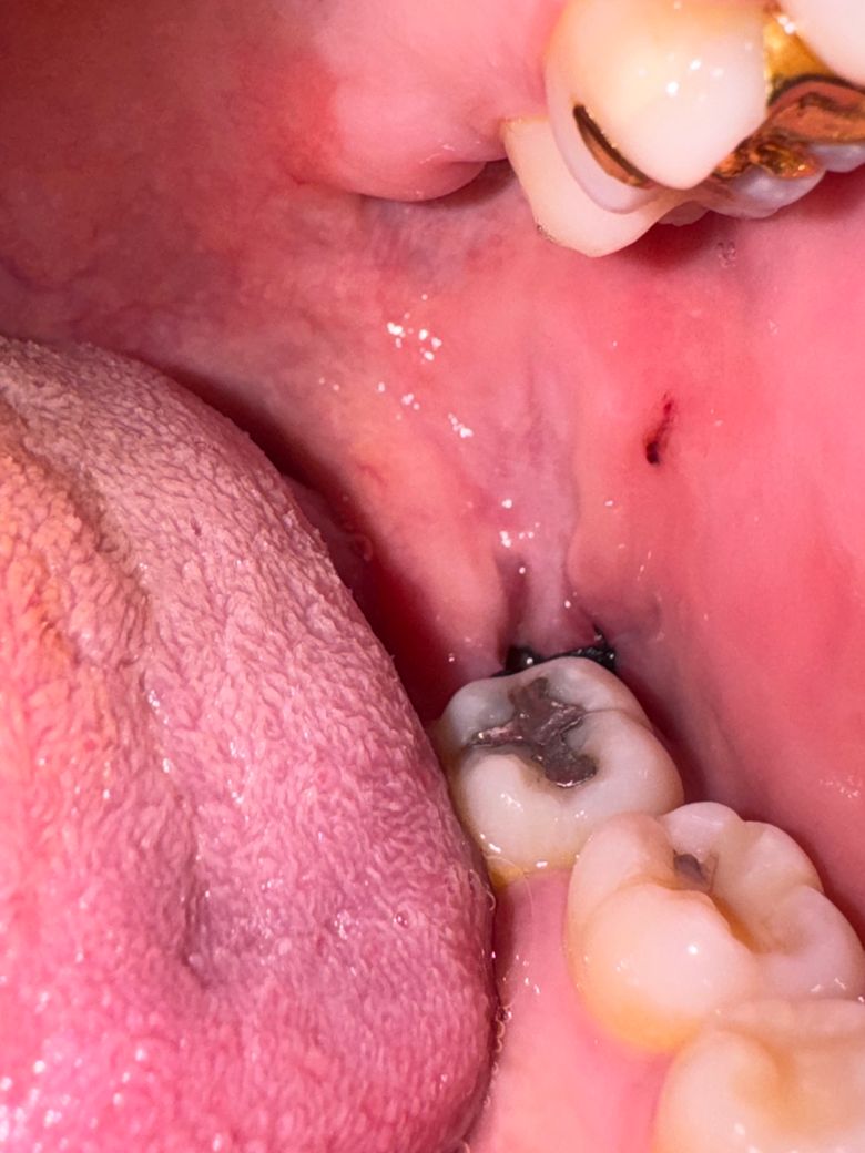 볼쪽도 발치하면서 자극받아 염증이 생긴 부위가 아물지 않은 것으로 보이며 시간이 지나면 좋아질 가능성이 높습니다.