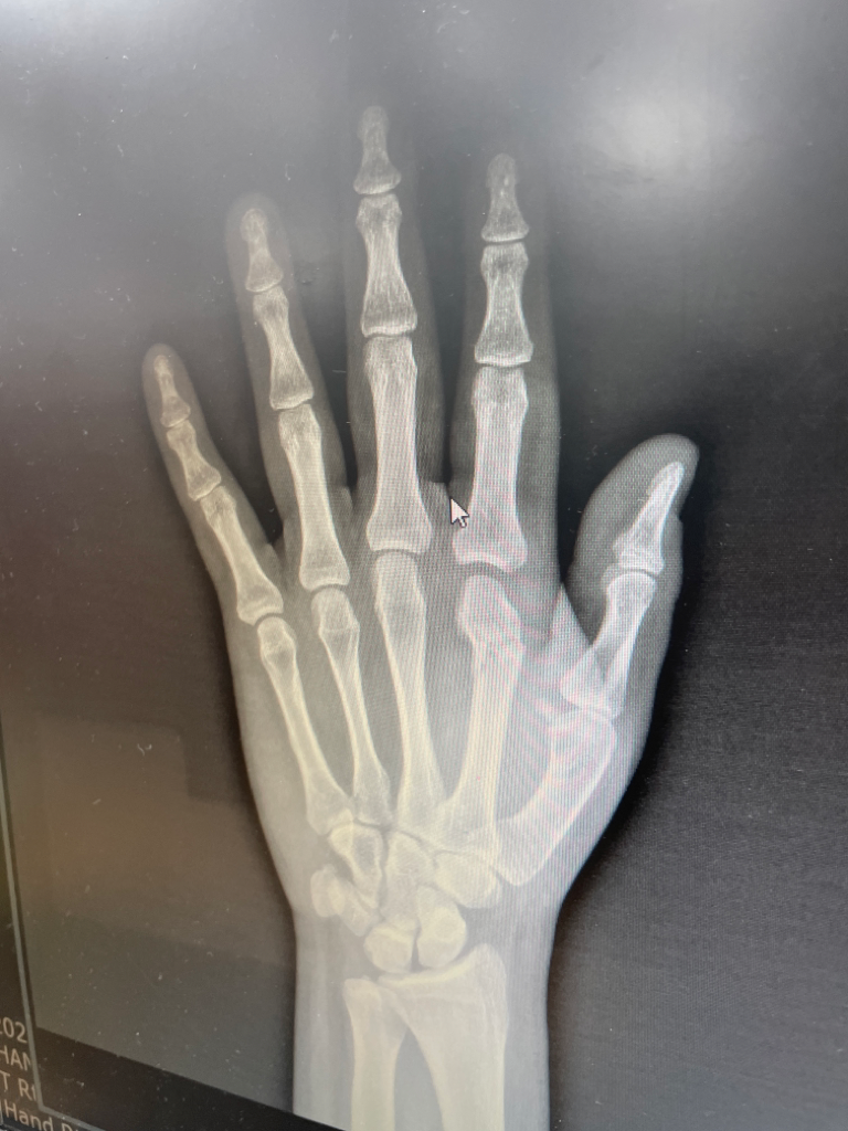 현재 중수골 원위부 골절로 인해 관절부위의 변형이 온 상태로 깁스로의 치료에는 한계가 있을 것 같으며, 추후 기능장애의 발생가능성이 높습니다.