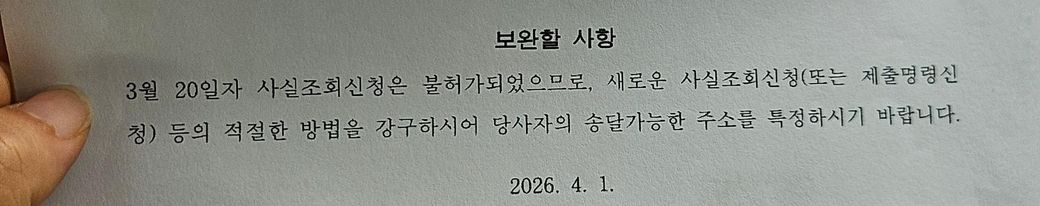 결국 보정 내용은 당사자에게 송달 가능한 주소를 확인해야 하는 것이고 위와 같은 자료가 아니라 사실조회를 통해서 당사자를 특정할 수 있는 방법을 모색해 보셔야 할 것입니다 직접 진행하기 어렵다면 변호사나 법무사 상담을 받아 보시는 것 권유드립니다 이상입니다