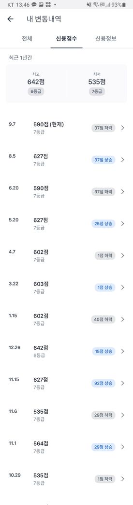 신용등급이 급락했습니다ㅠㅠ