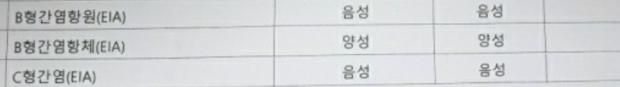 일단 사진 두 가지 경우 모두 B형 간염 항원은 음성, 항체는 양성, 그리고 C형 간염 항체 음성임을 표시한 결과지입니다. 즉, B형 간염은 보균자가 아니며 면역은 있고, C형 간염에는 감염이 되지 않은 상태임을 의미합니다.