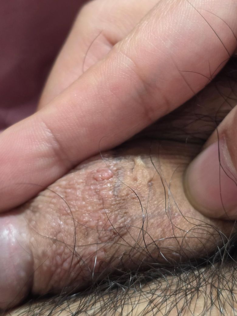 단순히 해당 부위 피부가 과증식하여서 생긴 소견일 수도 있지만 곤지름의 가능성을 완전히 배제할 수는 없겠습니다. 관련하여서는 그냥 괜찮겠거니 하고 지켜보시기 보다는 실질적으로 비뇨의학과 진료 및 검진을 통한 구체적인 감별 진단 및 상태에 맞는 치료를 받으시는 것이 적절할 것으로 사료됩니다.