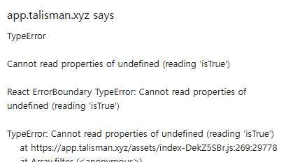 정확하게 오류 내용을 확인하긴 어렵지만, 제가 봤을땐 탈리스만 지갑의 자체적인 오류 또는 아스타 네트워크 오류로 생각됩니다.