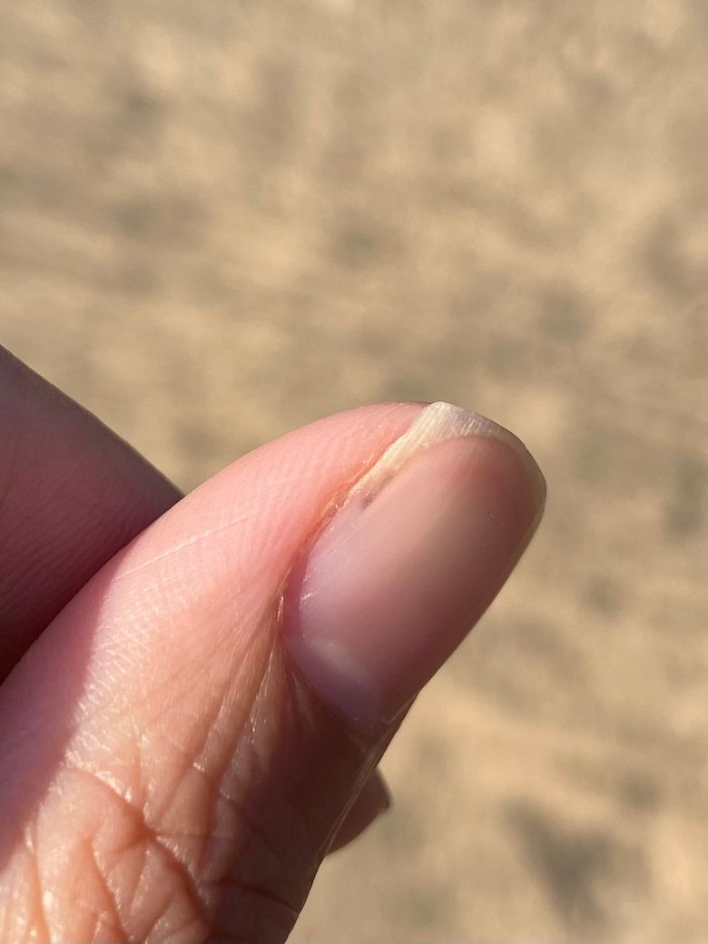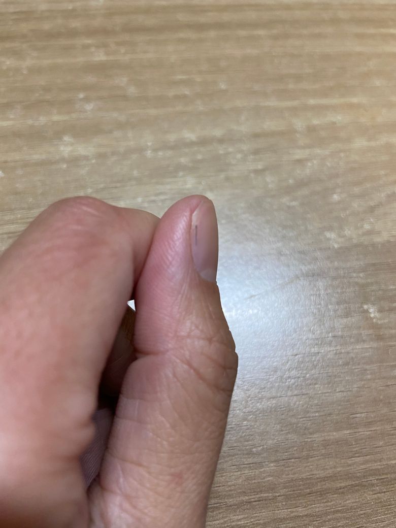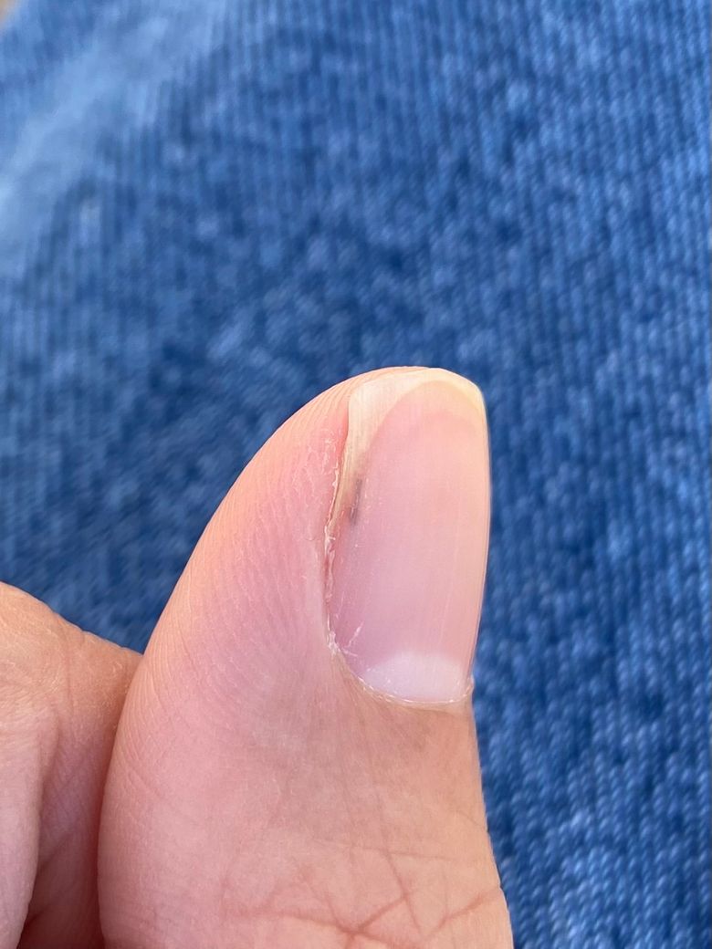조갑하 선상출혈 (Splinter hemorrhage) 라고도 하며 마찰이나 외부 자극으로 손톱 아래에 작은 출혈이 생기는 것입니다.