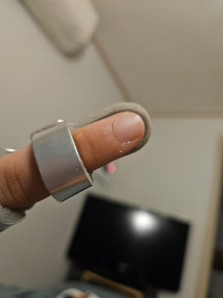 인장력을 사용하는 그 방묘문.. 거기에 손가락이 끼었습니다..! 왼손 검지의 손톱 반절정도만요!!