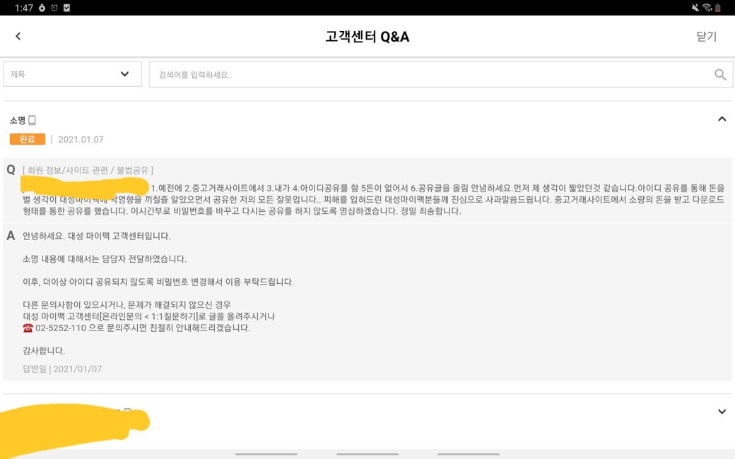 1.구매자분이 신고해서 계정공유가 막혔는데