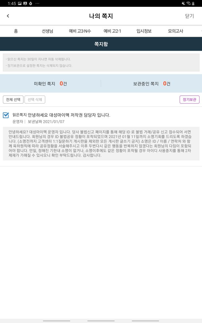 인강측에서 공유 금지(한번 더하면 아이디 정지)와