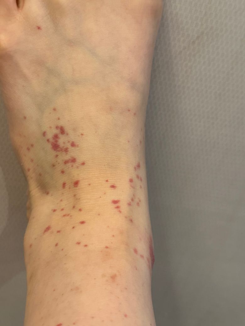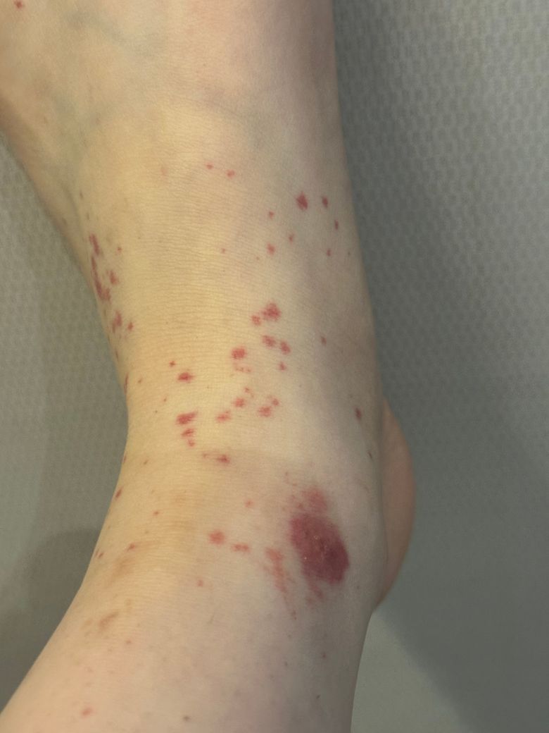 오전만 해도 발목 한군데에만 모기 물린것처럼 빨간 동그라미가 있다가