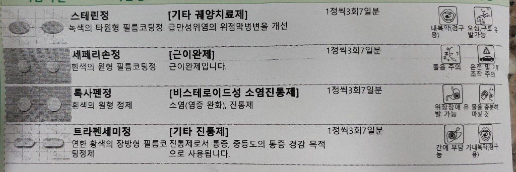 또한 정형외과에서 받으신 록사펜정, 트라펜세미정도 위장장애를 유발할 가능성이 있습니다