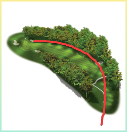 반대로, 코너를 가로지르는 샷을 이용하면 거리를 단축할 수도 있지만, 벙커나 해저드에 빠질 위험도 있는 홀이기도 합니다.