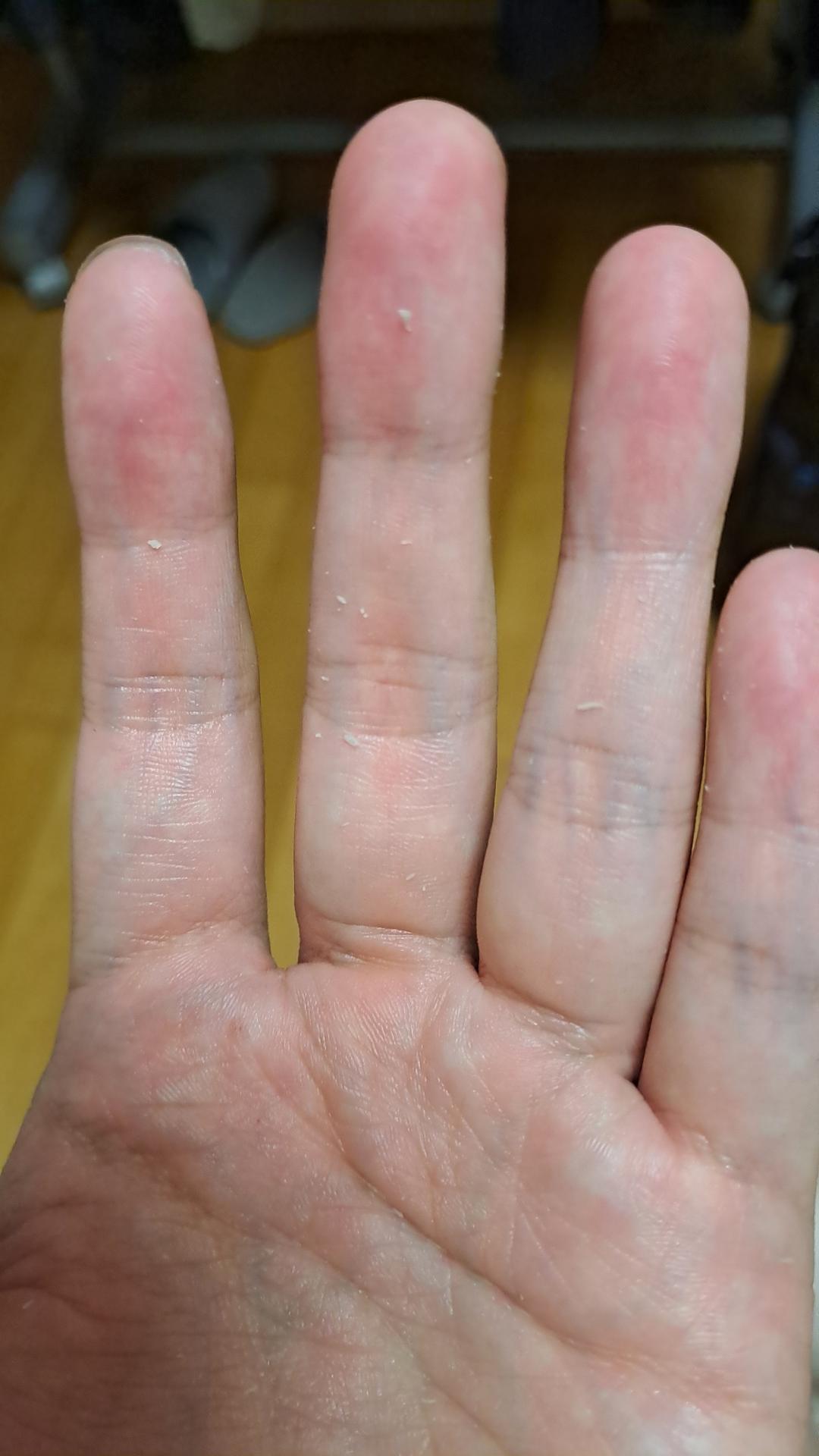 손에 묻어서 찍었는데 각질이라면 안 좋을 수 있어요.
