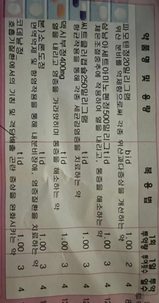 편도염 치료를 위해 처방받는 약의 상세 정보를 사진으로 첨부하였습니다.