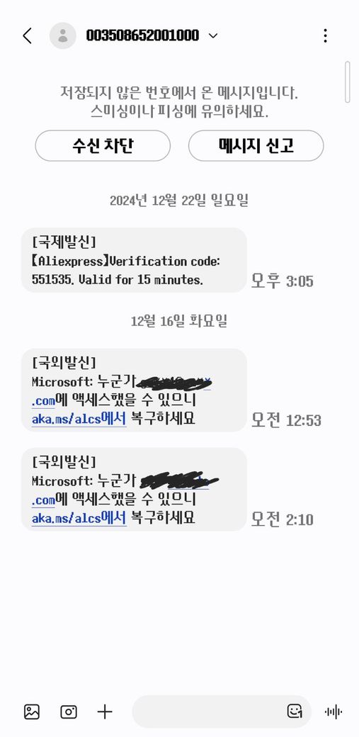 마이크로소프트에서 국외에서 누군가가 액세스했을수도 있다라는 문자가 와서