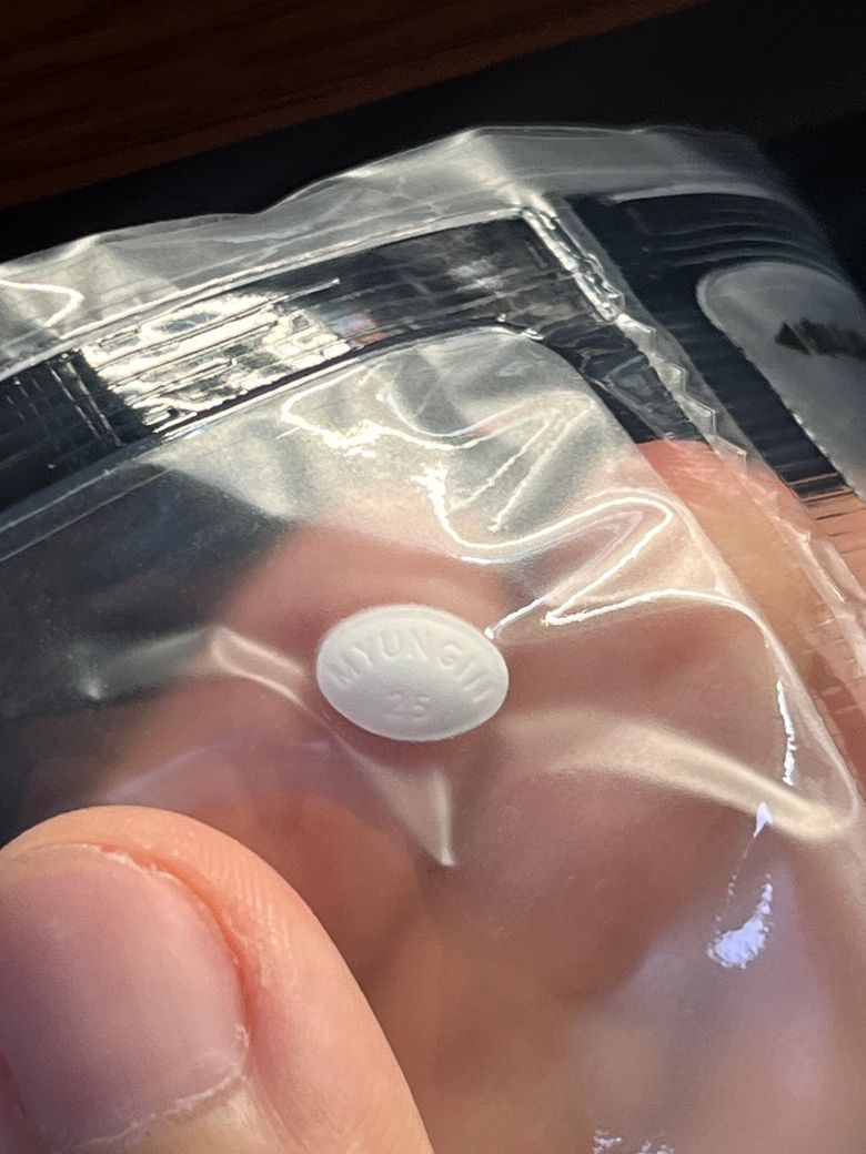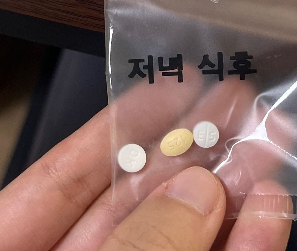 MYUNGIN 25 라고 적혀있는 흰색 타원형의 의약품은 "자나팜정0.25mg" 입니다