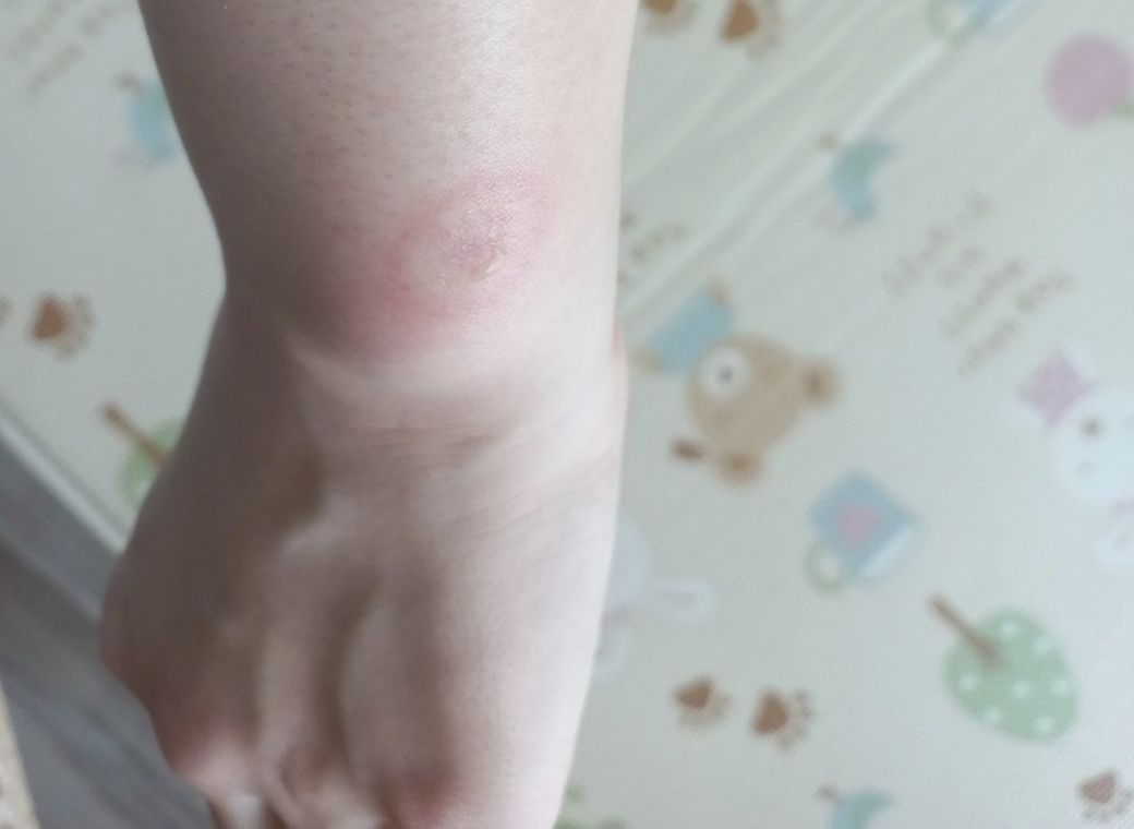 무슨 벌레에 물린것 인지 갑자기 집에서 손씻고 나오던 중 통증을 느껴서 팔을 보니 이러한 자국과 함께 화상 입은듯한 통증이 느껴집니다. 수포도 올라오고 있는 것 같습니다..