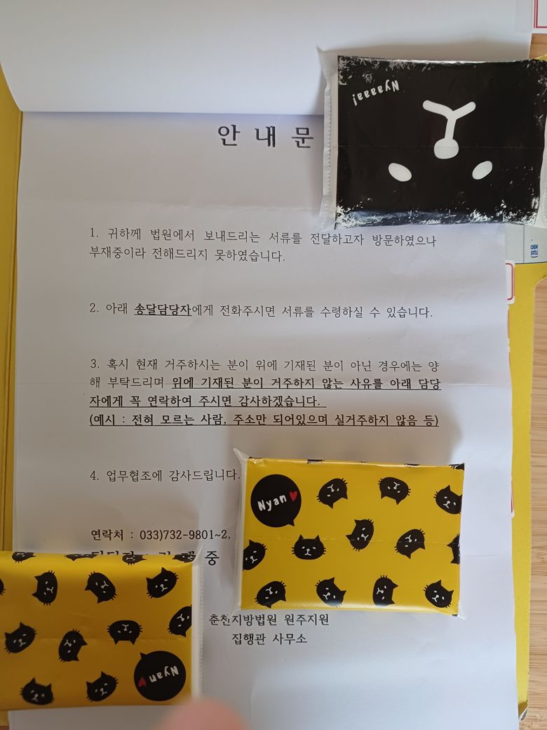 외출후 귀가해보니 이런 법원안내장이 와 있네요?