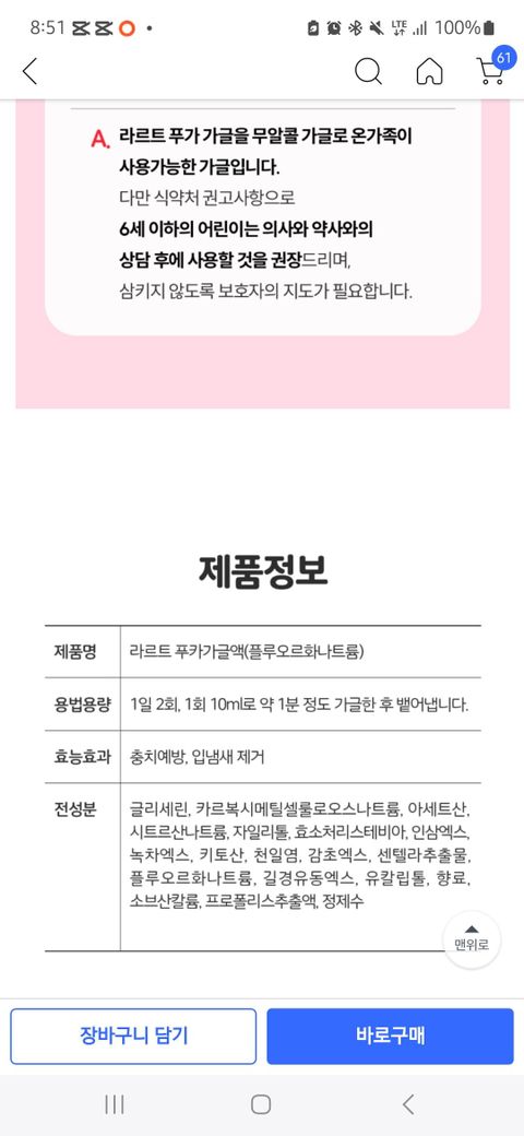 아이가 가글을 삼키는 경우가 많다면 사용하지 않는 것이 좋습니다.