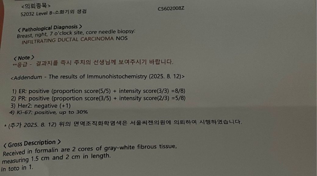 림프절전이여부는 아직모르겟어요..대학병원에서 의심되는부분이 한군데 있어서 조직검사후기다리는중입니다
