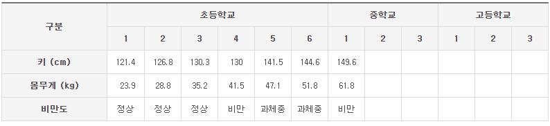 3학년에서 4학년으로 올라갈때는 오타인거같아여. 그냥 +5 해서 4학년은 135.3으로 해주세요!