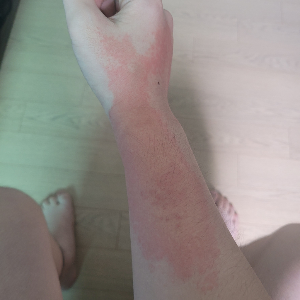 오늘은 병원이 열지 않아서 내일 가서 진료도 받고 알레르기 혈액검사도 해볼 예정입니다. 넓게 번져서 괜히 걱정이 많이 되는데 괜찮겠죠?ㅜ 나을 수 있겠지요?.. 지금 약도 먹고 바르고있는데도 안가라앉고 더 번지니 너무 무섭고 힘듭니다 전날 저녁 오늘 새벽에는 간지러워서 잠도 제대로 못자고 계속 손으로 문질렀습니다..손톱으로 긁진 않았구요.. 오른팔은 조금씩 노랗게 변하고있는 느낌이긴 합니다