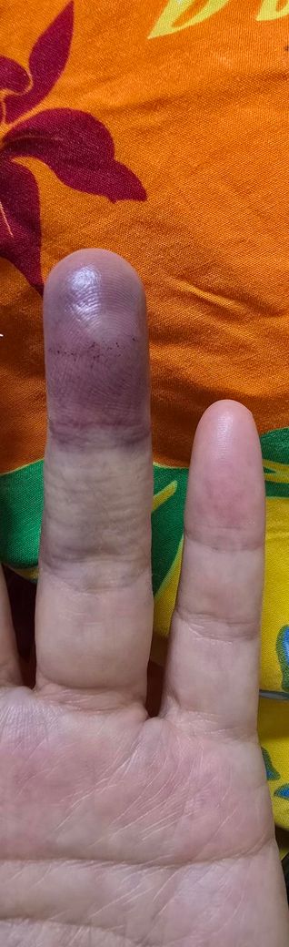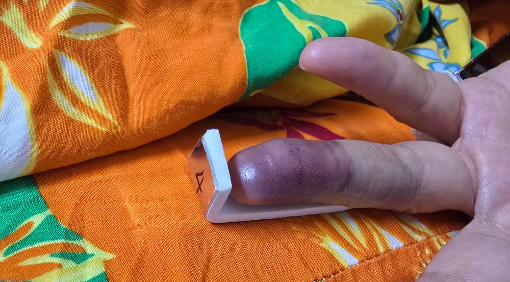 올려주신 사진을 보면 손가락 끝을 문에 찧어서 부목을 대셨던 상황으로 보이네요 부목은 손톱 위가 아니라 손바닥 쪽, 손가락이 구부러지지 않도록 손가락과 손바닥이 일직선이 되게 고정하는 것이 맞습니다.