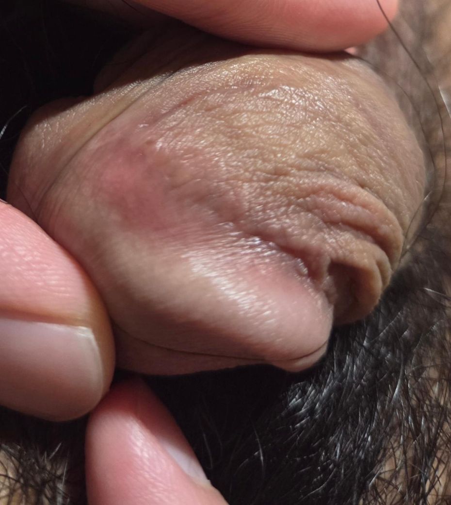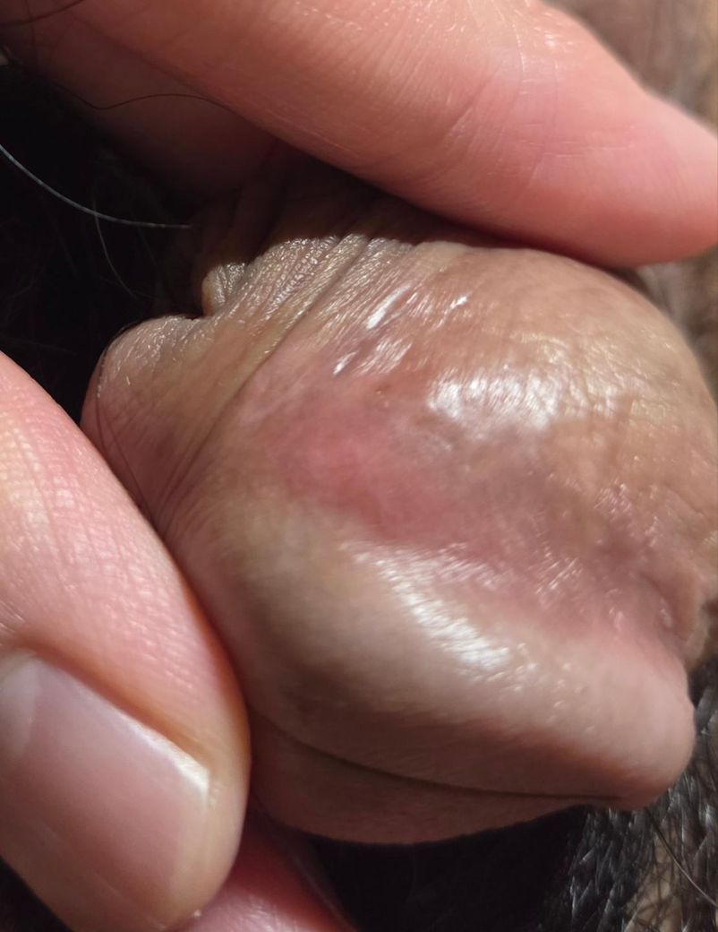 안녕하세요, 사진에 보이는 것과 같이 뾰루지 비슷한 것이 귀두 바로 밑 부분에 생겼습니다.