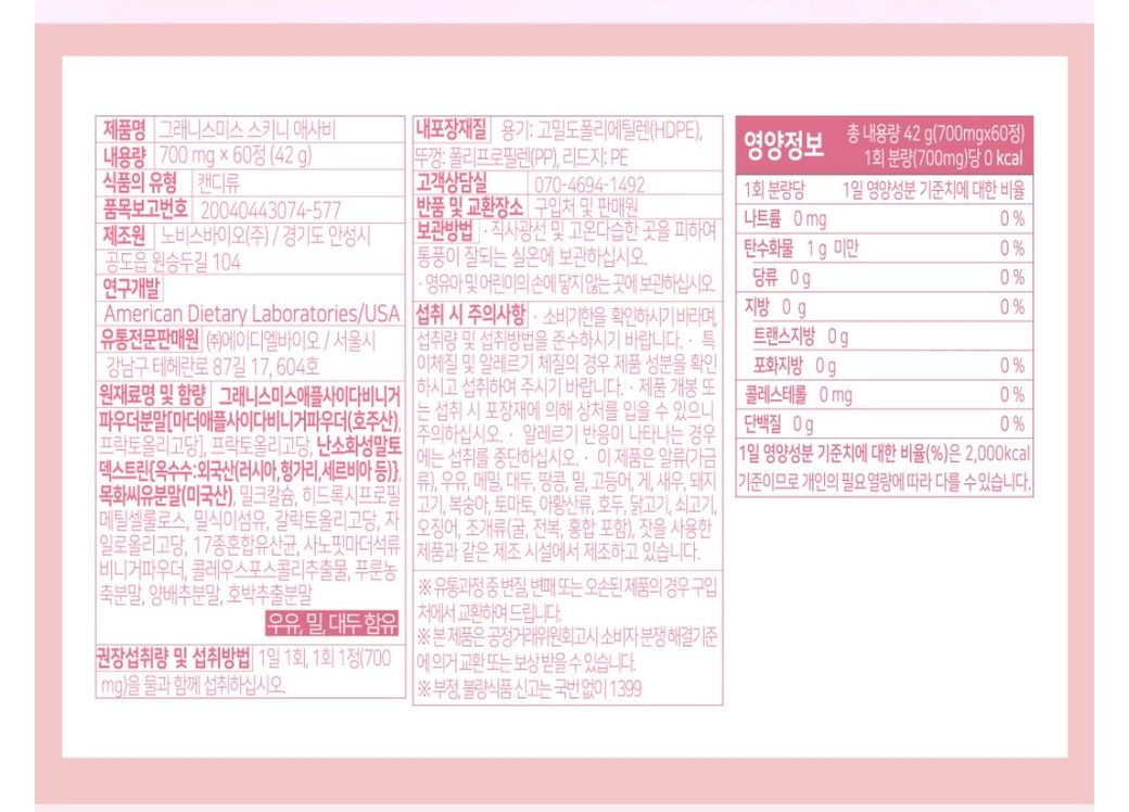 도움 부탁드립니다! 아래 사진은 복용하고자 하는 애사비 제품의 영양성분표입니다.