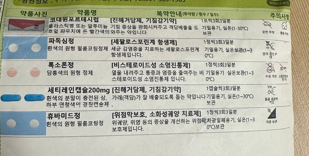 감기약을 복용하면 입이 많이 마르기때문에 물을 많이 드세요.
