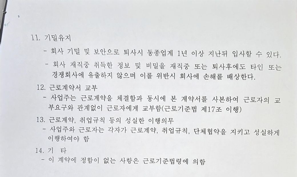 6. 근로계약서에 기밀유지사항만있고 겸업금지조항은없음