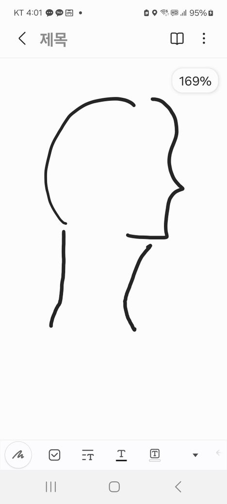 그림상 정확한 상태를 알 수는 없으나, 일단 목이 앞으로 튀어나오지 않게 그림을 그리신 상태이고 목의 C자 커브는 소실되어 있으신 상태이기 때문에 일자목일 가능성이 높다고 생각합니다.