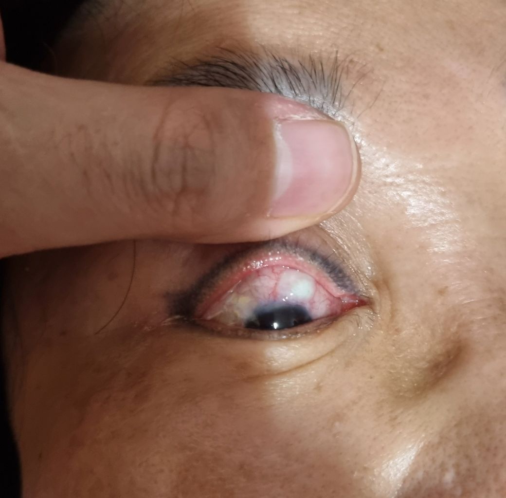 눈 흰자에 흰색 반점같은것이 생겼습니다