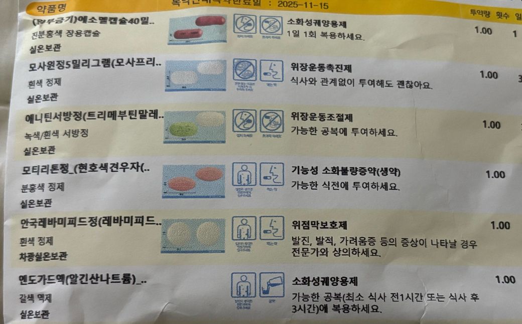 2번째 사진속 병원약들을 복용중인데 저것들을 먹어도 위가 좀 아파서 스토마큐 한포 먹어보려는데 먹어도 괜찮을까요? 전부 다 소화제라 중복될까봐요