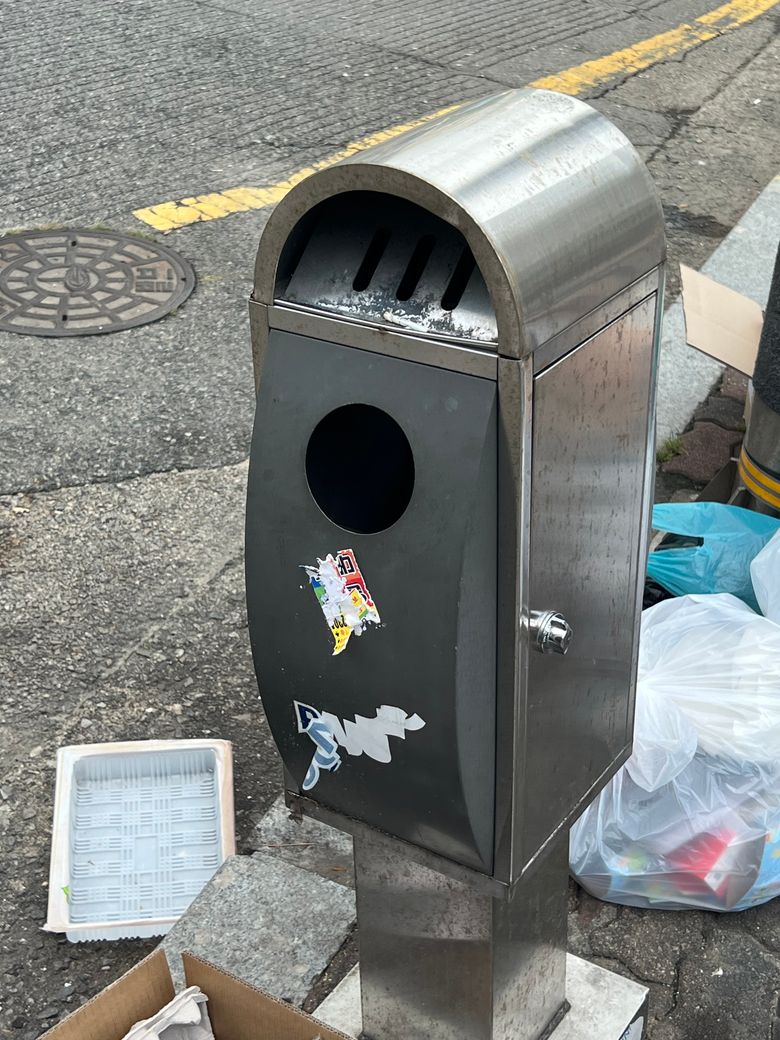 네 맞습니다 재떨이와 스레기통 겸용 입니다 예전에는 많이 있었던 건데 요즘은 길거리에 이런 쓰레기통 보기 힘든데 말이죠 흡연가능 지역인듯 합니다.