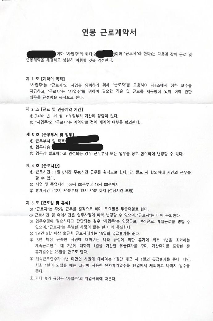 해당 근로계약서에 문제가 없는지, 야근수당은 받을 수 있는지 확인부탁드립니다