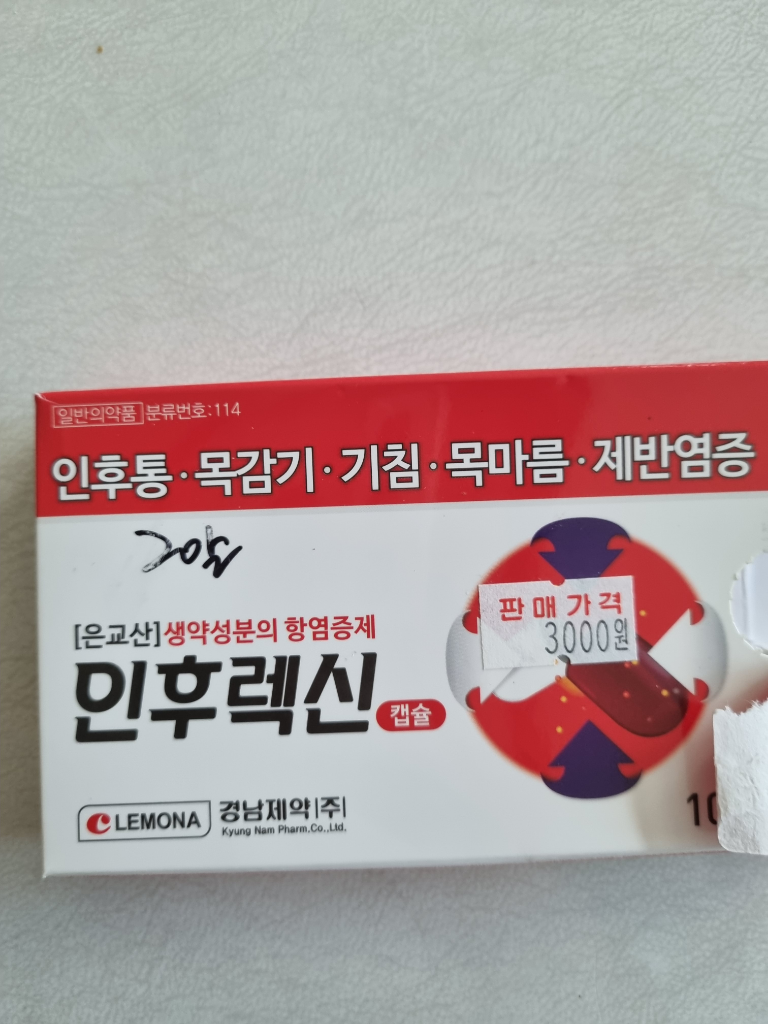 인후렉신캡슐은 목이 아플때 먹는 약이에요.