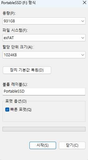 파일을 exfat으로 바꿔야 움직일 수 있다고 해서 윈도우로 외장하드를 포맷하려고 보니 exfat으로 선택이 되어 있었습니다