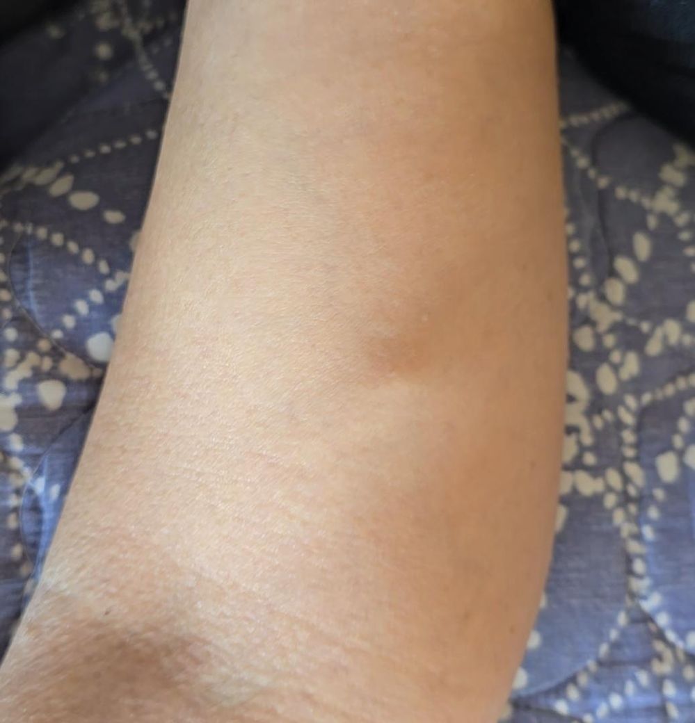 오른쪽 팔 위쪽으로 볼록하게 튀어나와있고 심장박동과 같이 움직입니다.올라갔다 내려갔다~