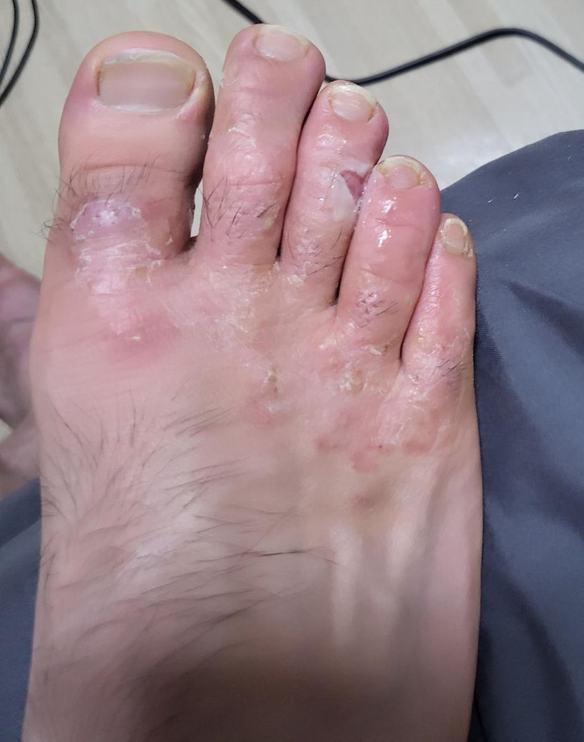제목처럼 무좀인지, 습진인지 알려주세요. 그리고 상태가 호전되기위해서 할 수 있는 방법들 알려주세요. 참고로 평소에도 발에 땀이 조금 많습니다;;
