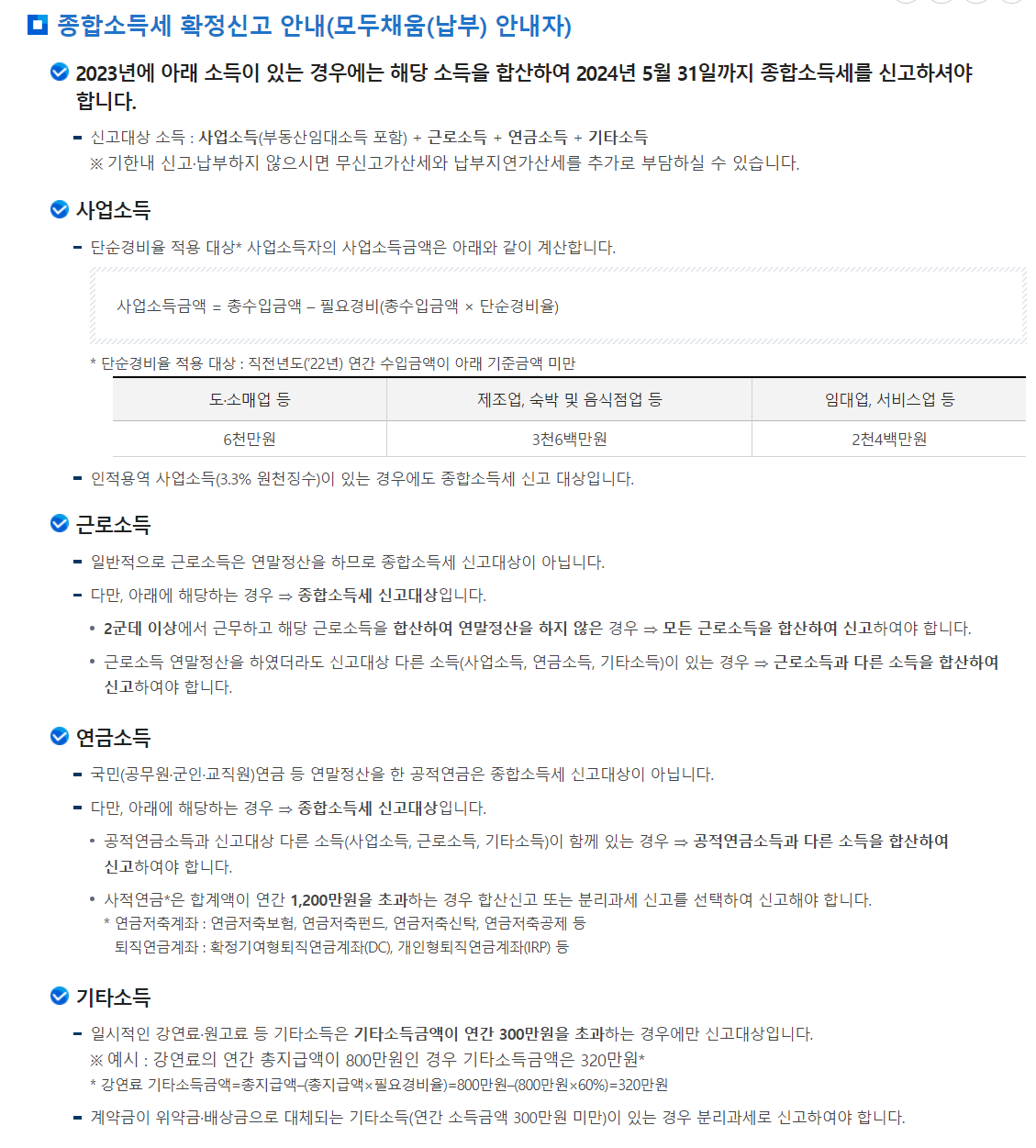 종합소득세 신고대상 소득이 단순경비율 대상 사업소득만 있는 사람에 대해서