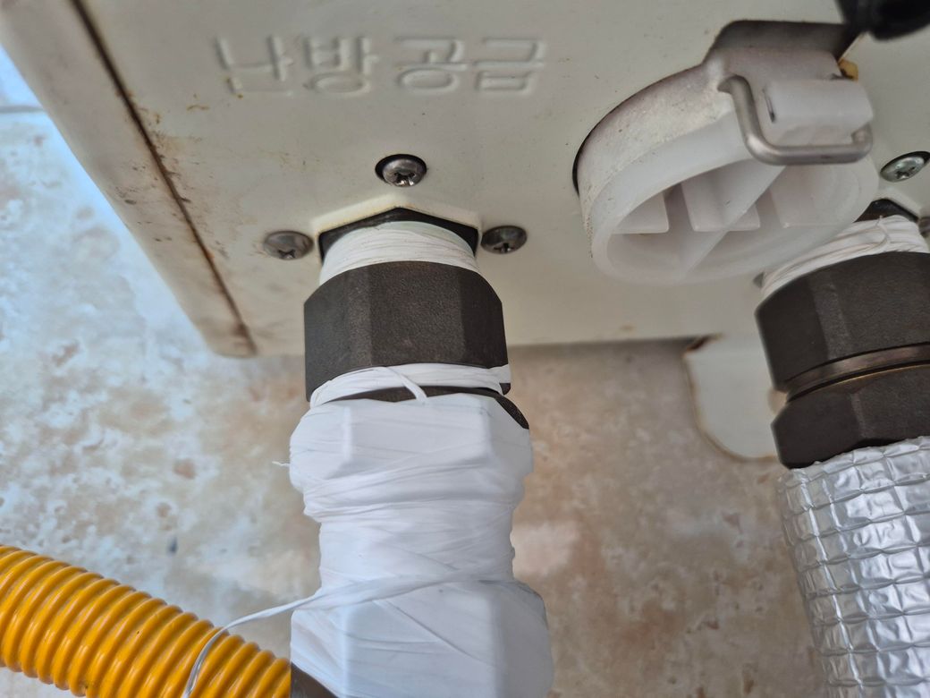 임시 초치로 테프론테이프 감아 두니까 물이 안세네요 이렇게 임시조취 해두고
