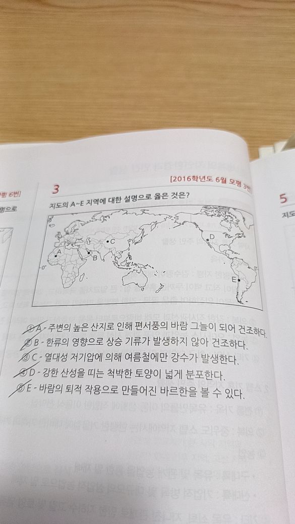 아타카마 사막의 풍경을 보면, 굳이 바르한이 아니더라도 사구라고 부를만 한 것들을 만들 모래가 많이 없는 것으로 보입니다. 하지만 아래 문제의 답은 5번입니다. 그냥 사막이니 만들어진다 치고 넘어가야 할까요? 그렇다 해도 궁금합니다.