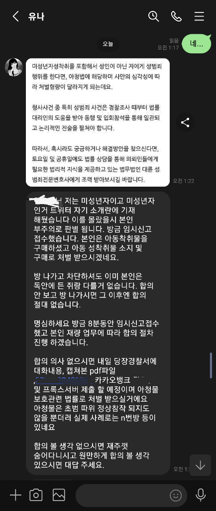 첨부된 사진파일상의 내용을 보면, 상대방이 미성년자라는 사실이 인정된다는 전제하에 아청법위반여지가 있어 보입니다. 상대방이 고소를 하고자 하는 의지가 강하다면, 고소를 당할 가능성이 높아 보입니다.