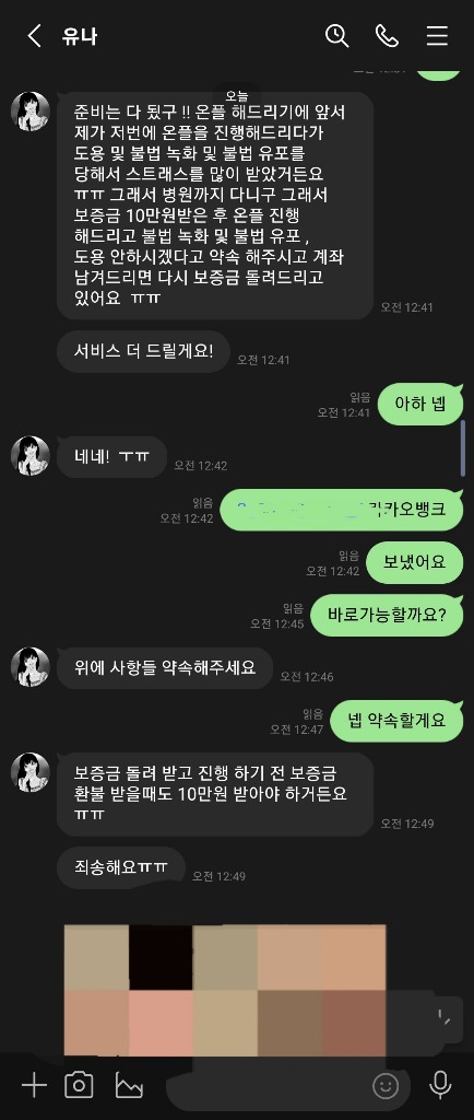 성적인 행위를 유도하고 이를 빌미로 협박해서 돈을 뜯어내는 공갈행위의 전형적인 수법으로 보입니다.