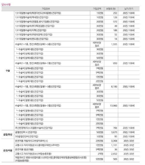 보험사마다 좋은 특약들이 있기에 모든 특약을 한 곳에 몰아서 가입하시는것 보다는 2~3개 정도 쪼개서 각 보험사의 좋은 특약들을 구성하는 것이 좋습니다.